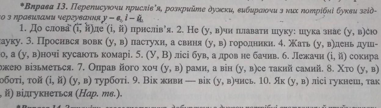 1. До слова йде і прислів'я. 2. Не вчи плавати щуку:щука знає всю науку. 3. Просився вовк у пастухи, а свиня в городники. 4. Жать вдень душно, а вночі кусають комарі. 5. В лісі був а дров не бачив. 6. Лежачи і сокира (не видно на фото) ожею візьмется. 7. Оправ його хоч у рами, а він все такий самий. 8. Хто в роботі, той і в турботі. 9. Вік живи - вік учись. 10. Як у лісі гукнеш, так і відгукнеться.