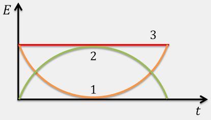 На графике изображены три линии, описывающие падение тела с некоторой высоты и его последующий отскок от земли. Определить, какая линия какой величине соответствует