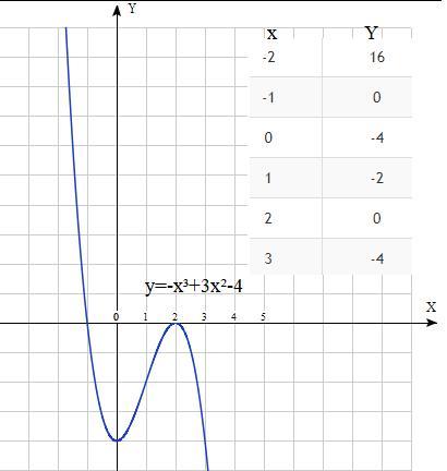 y(0)=-0³+3*0²-4= -4 Точка (0; -4).