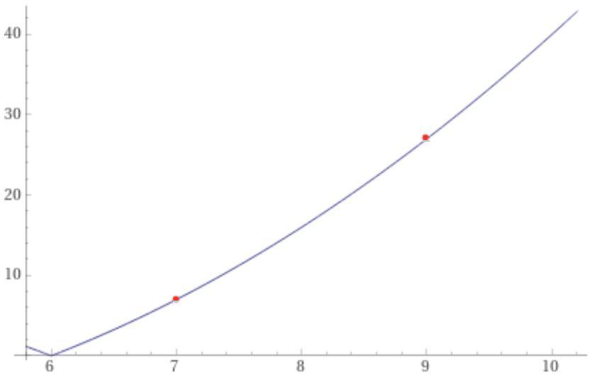 Все рассуждения касаются только отрезка x ∈ [7; 9]. На этом отрезке выражение под знаком модуля x(6 – x) отрицательно, поэтому f(x) = x(x – 6).