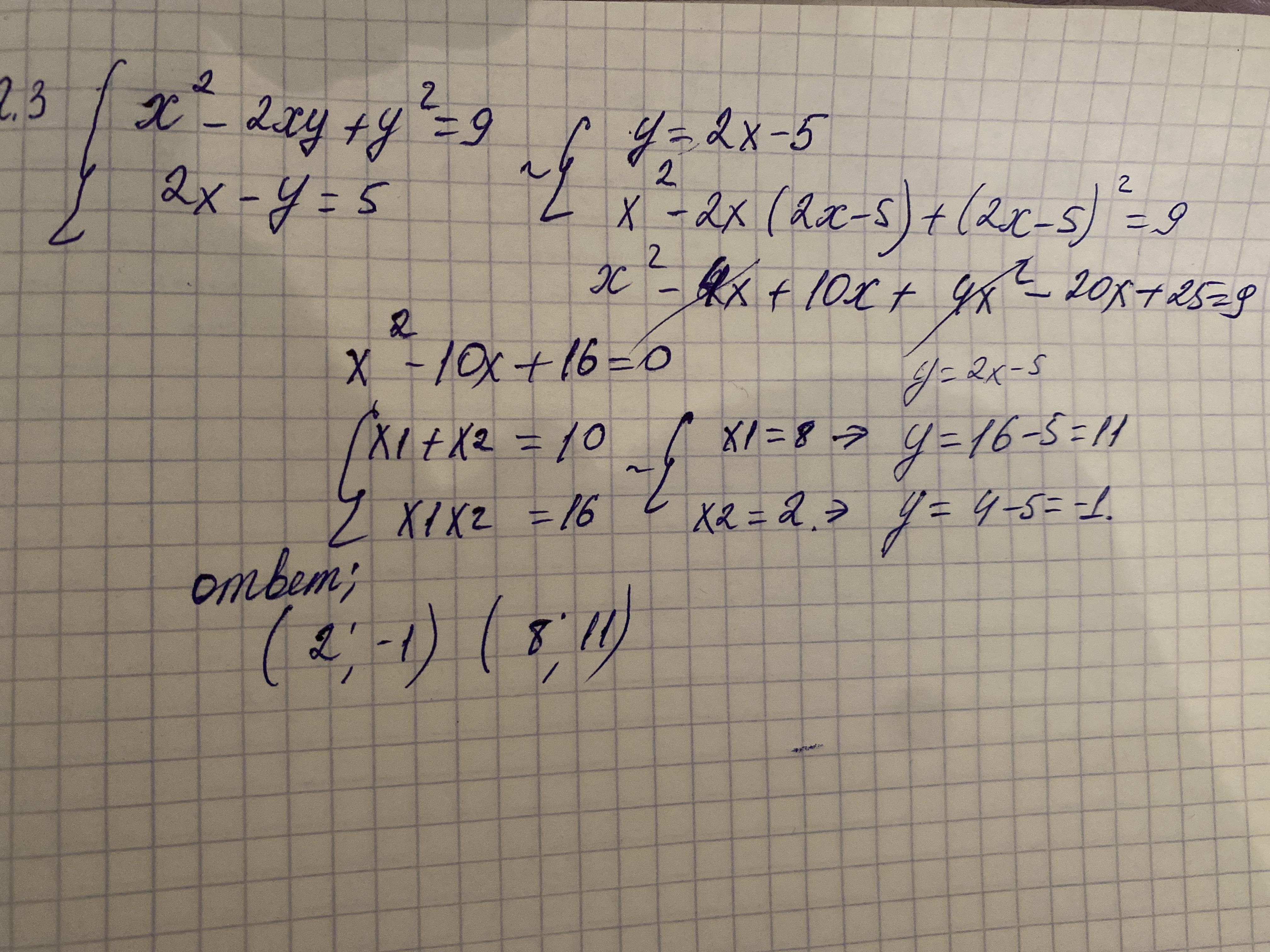 x²-2xy+y²=9; ⇔ (x-y)²=9; ⇔ x-y=±3;