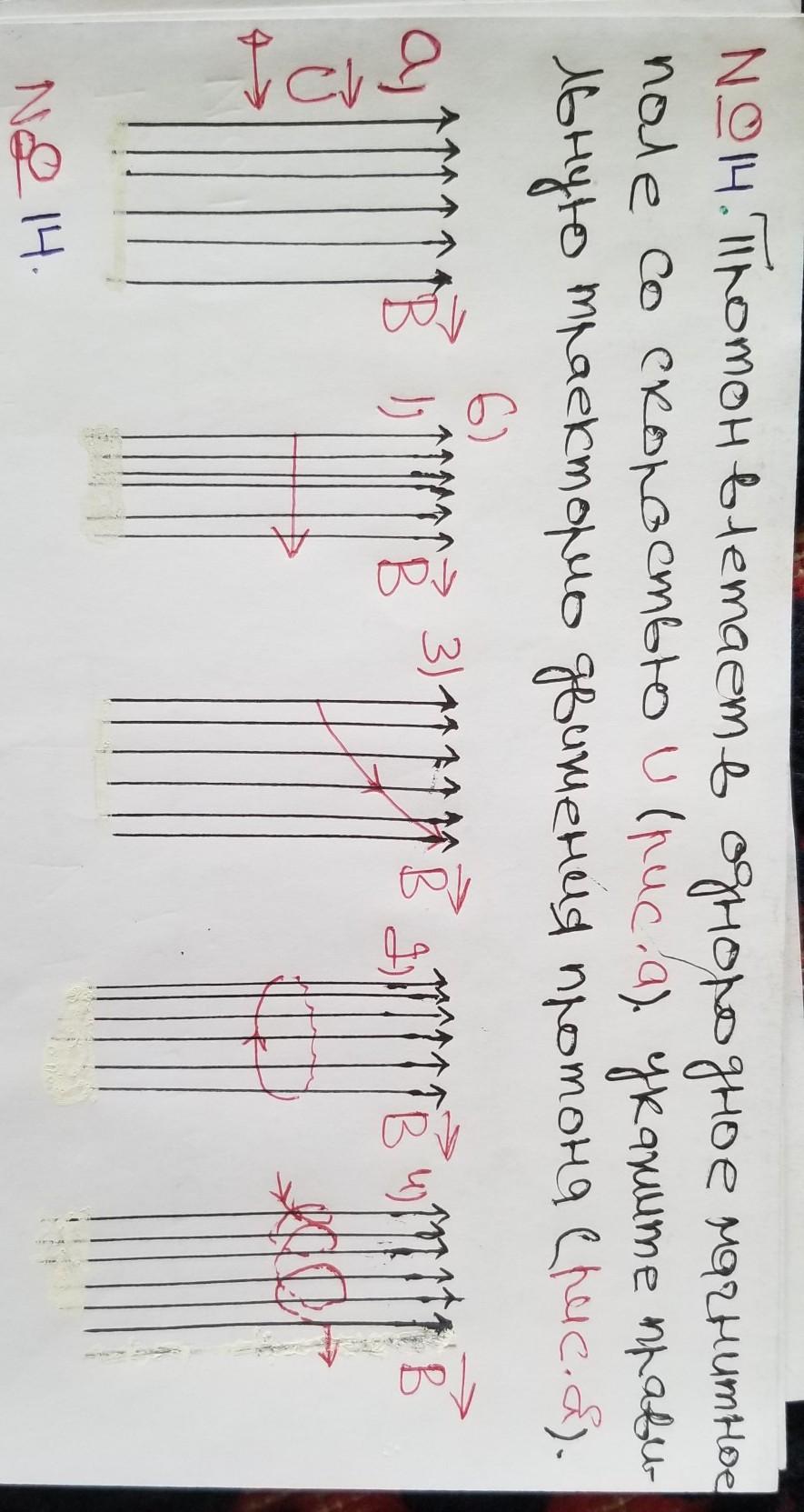 № 14. Протон влетает в однородное магнитное поле со скоростью υ (рис.а). Укажите правильную траекторию движения протона (рис.б).