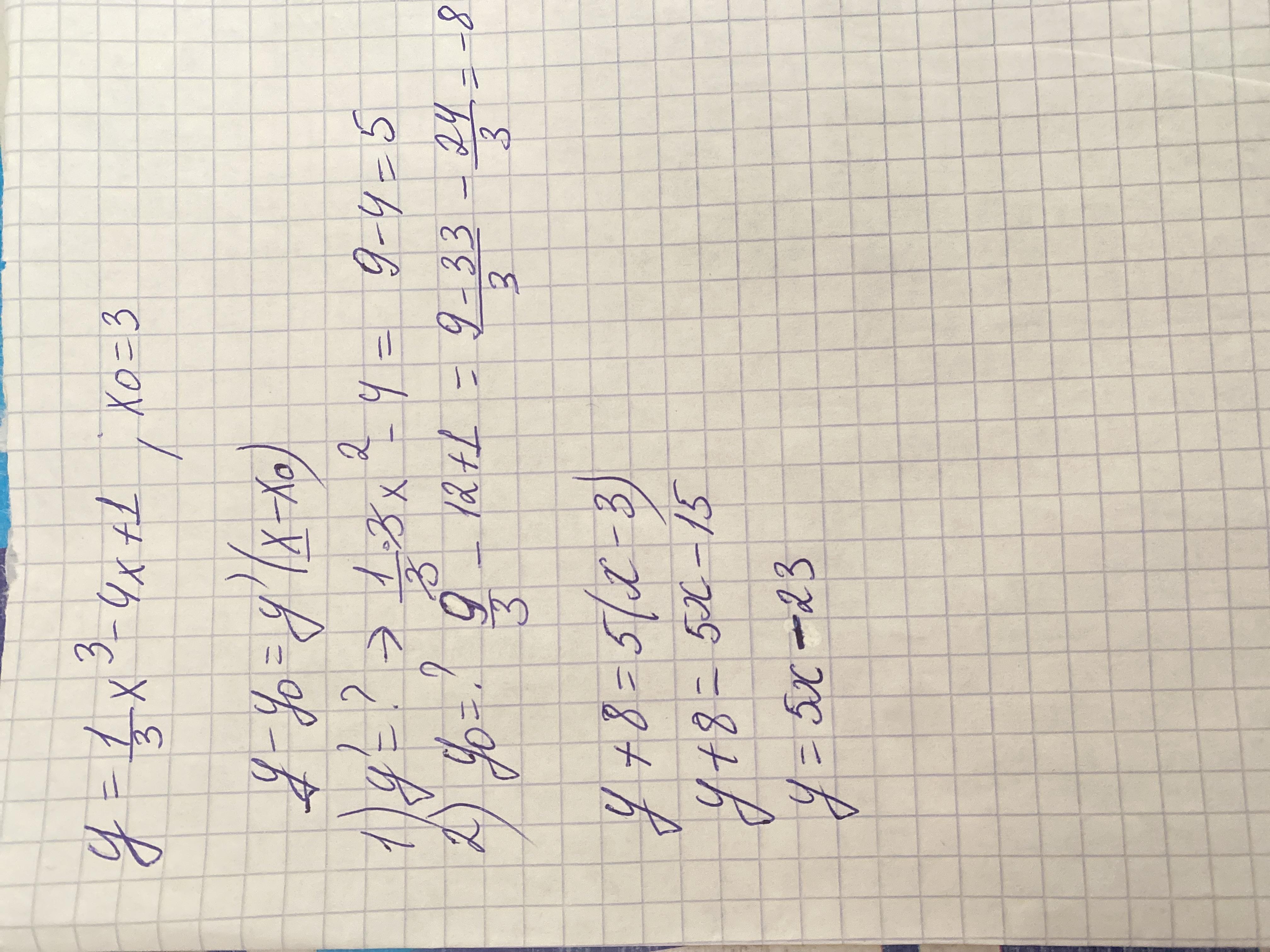 составьте уравнение касательной к графику функции y= 1/3 x^(3) -4x + 1 в точке абсциссой x0 =3