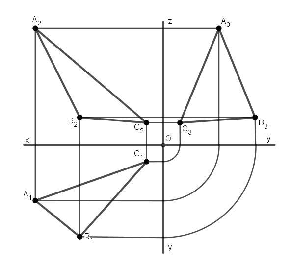Срочно!!! Помогите пожалуйста!! по координатам вершин А, В и С построить комплексный чертеж треугольника и определить его положение относительно плоскостей проекций A (x-46, y-20, z-42), B (x-30, y-33, z-10), C(x-6, y-6, z-8)