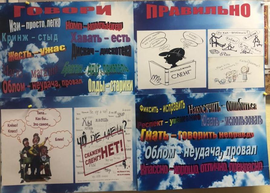 Плакат под девизом "Говори правильно" посвящен проблеме сленга в среде подростков и молодежи.