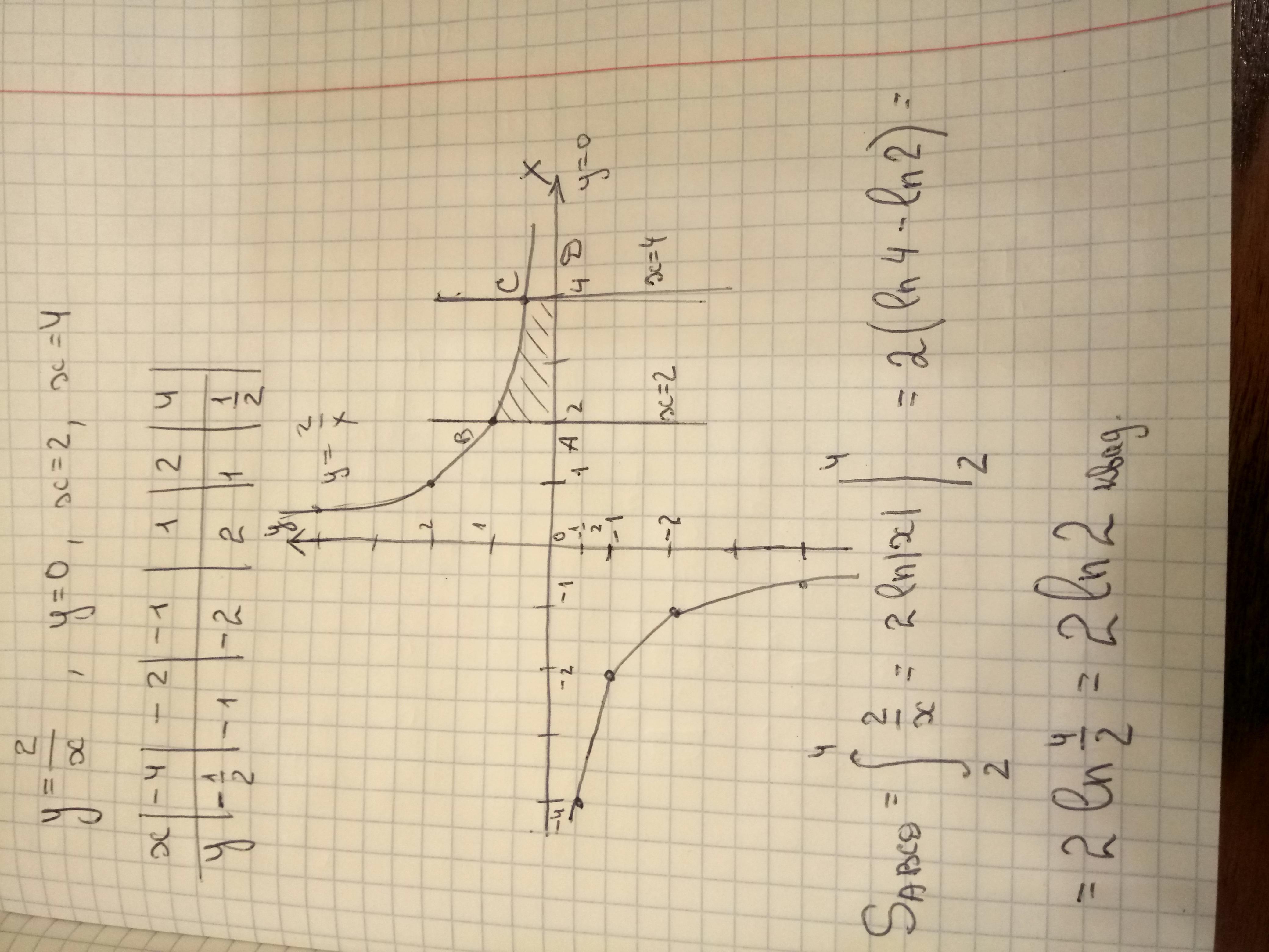 Решить и сделать график y=2/x , у=0 , х=2, х=4