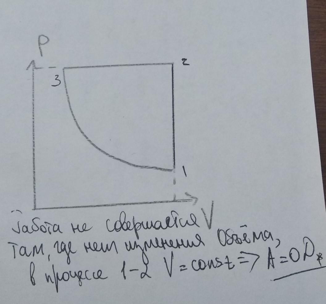 На графике в р-V координатах имеются гипербола, перпендикуляр к оси р, перпендикуляр к оси V. В каком процессе не совершается работа?