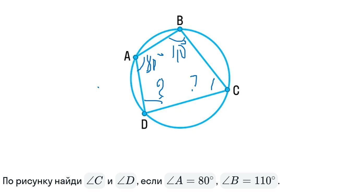 Таким образом, ∠C = 180° - ∠A = 100°; ∠D = 180° - ∠B = 70°.
