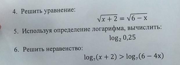 5. Логарифм — это степень, в которую нужно возвести основание (2), чтобы получить подлогарифмическое выражение (0,25), то есть