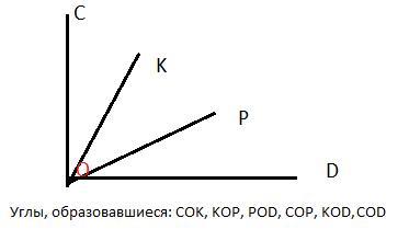 50 баллов. Нарисуйте угол COD и проведите лучи OK и OP между его сторонами. Запишите все углы, образовавшиеся.