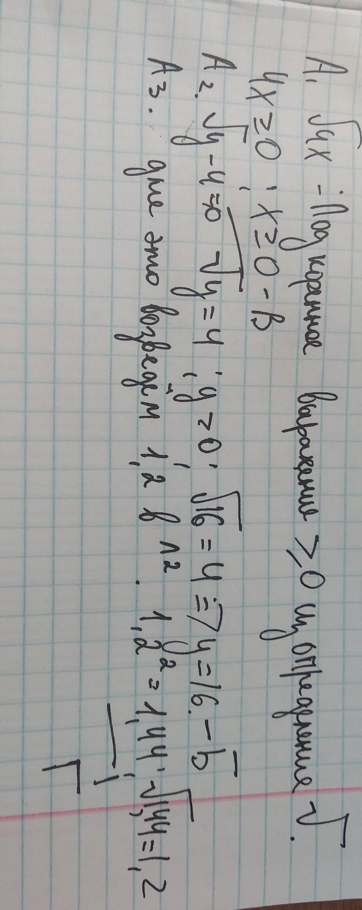 А3. Найдите число, арифметический квадратный корень из которого равен 1,2.