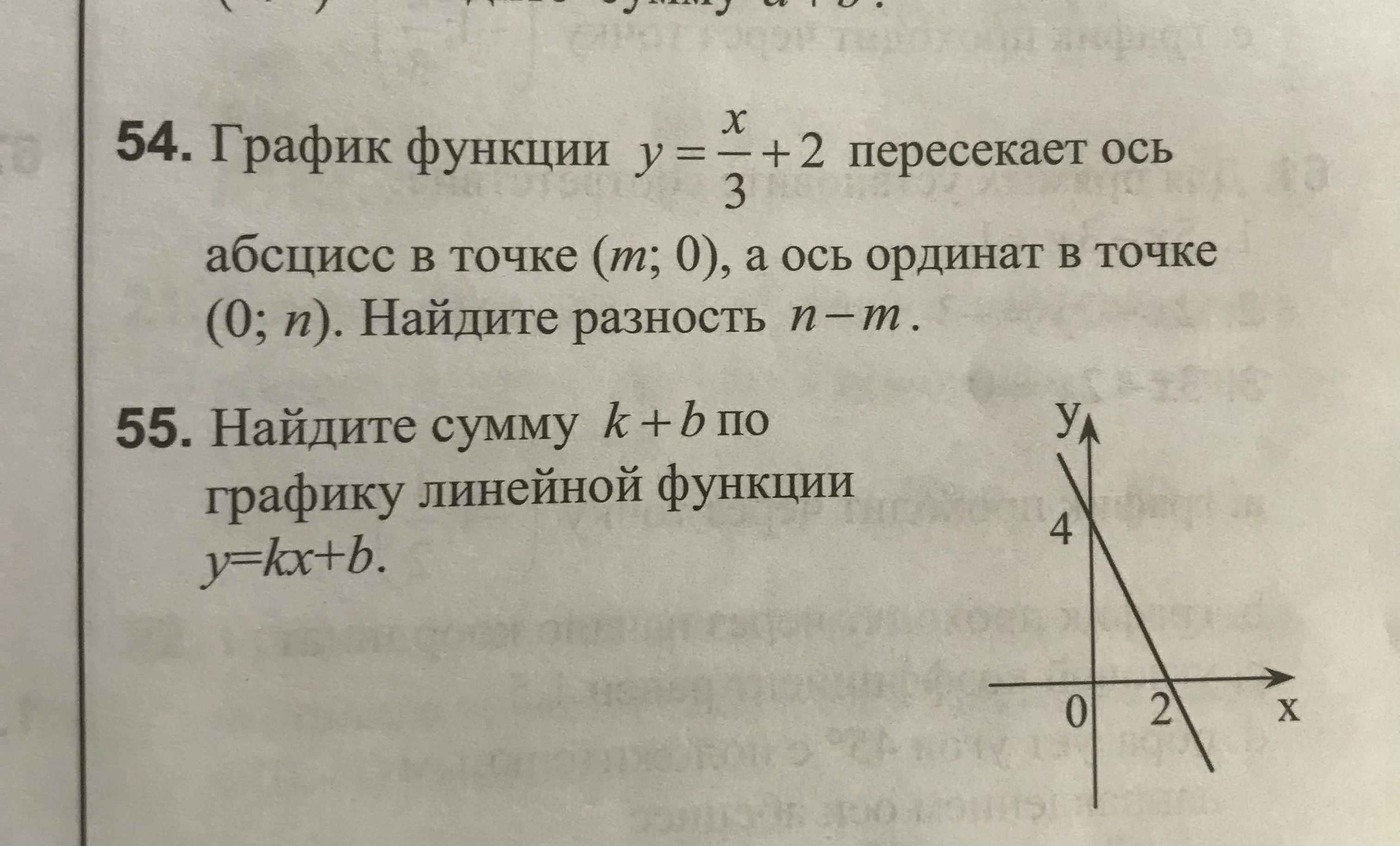55. по графику b= f(0) = 4 ⇔ из Δ 0 4 2 k = -4/2 = -2