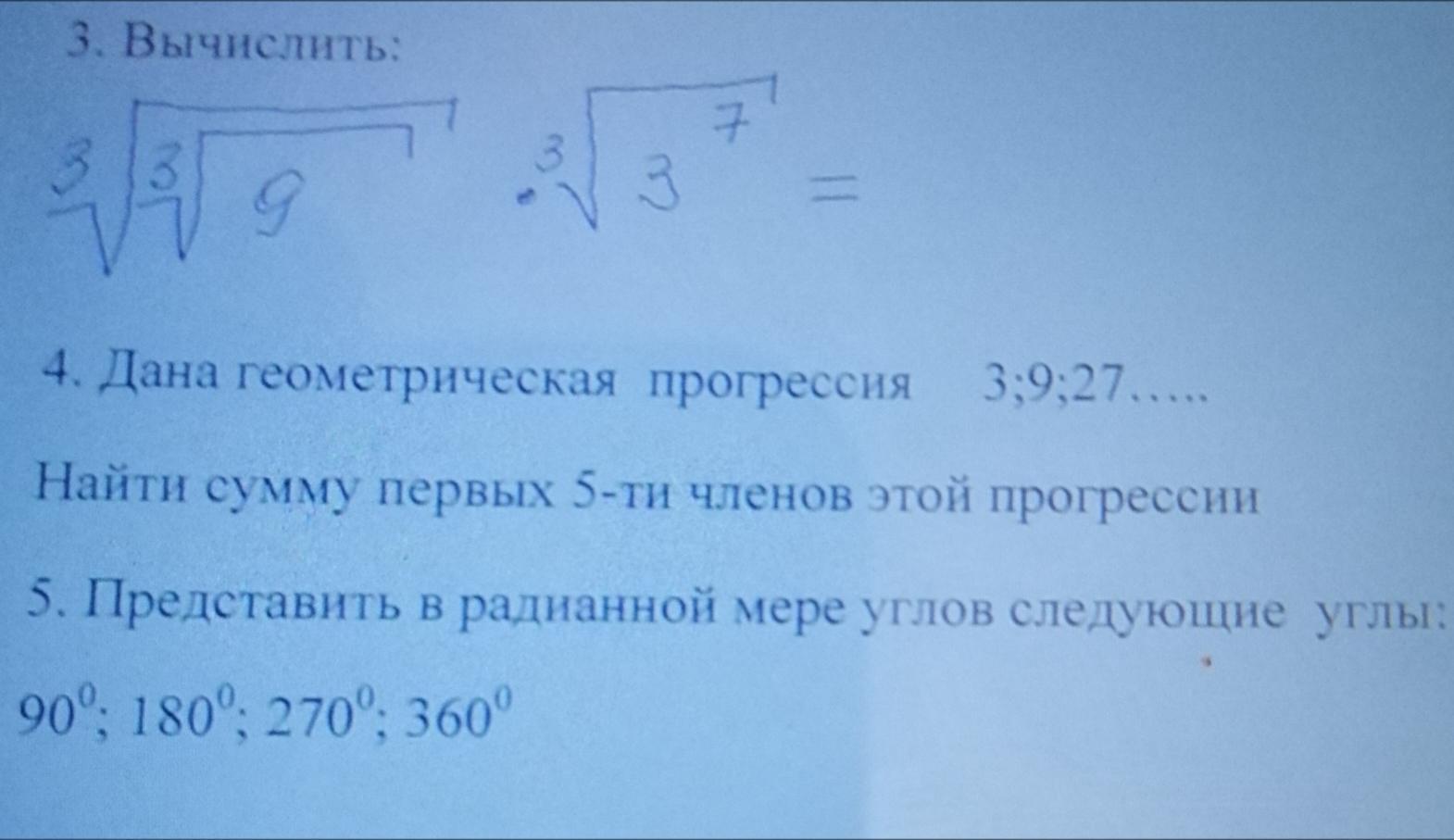 5 . 90° = 90* π/180 = π/2 ; 180° = π ; 270° = 3π/2 =1,5π ; 360° = 2π ( рад)