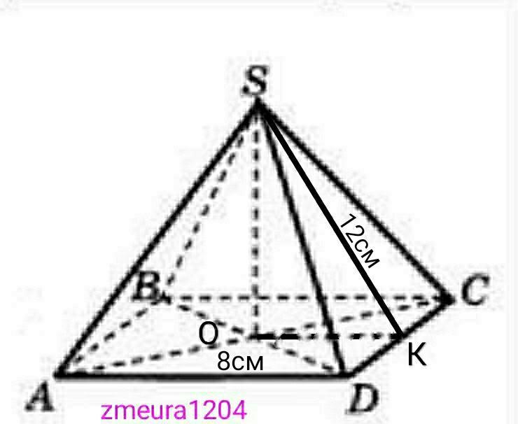 Sбок=1/2*4*АВ*SК=1/2*4*8*12=192см²