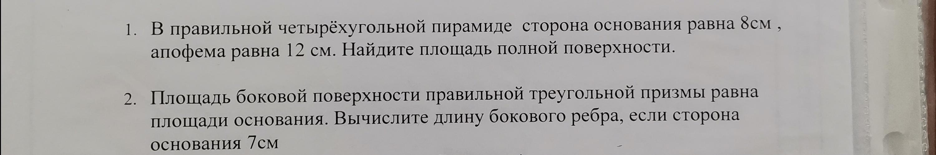 1) Площадь грани будет S1 = 0.5*8*12 = 48