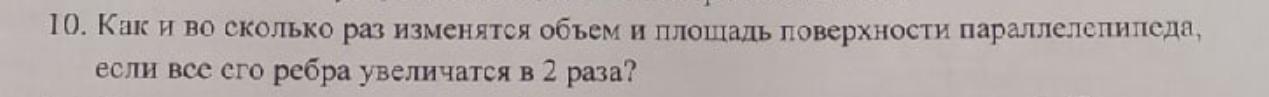 как и во сколько раз изменятся объем и площадь поверхности параллелипипеда если все его ребра увеличатся в 2 раза