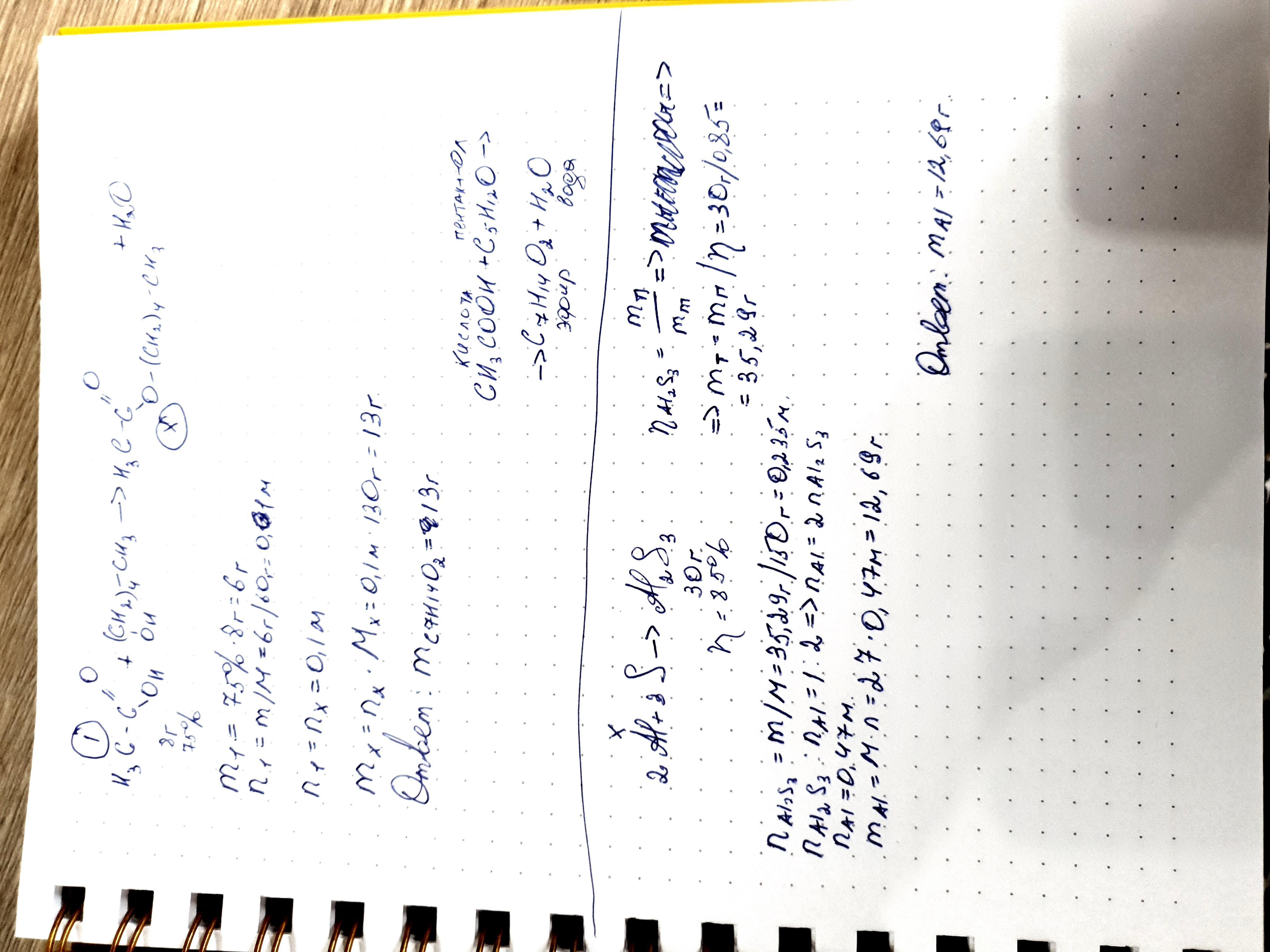 Визначте масу алюмінію, що прореагував з сіркою, якщо утворилось 30 г солі, а вихід від теоретичного становить 85%