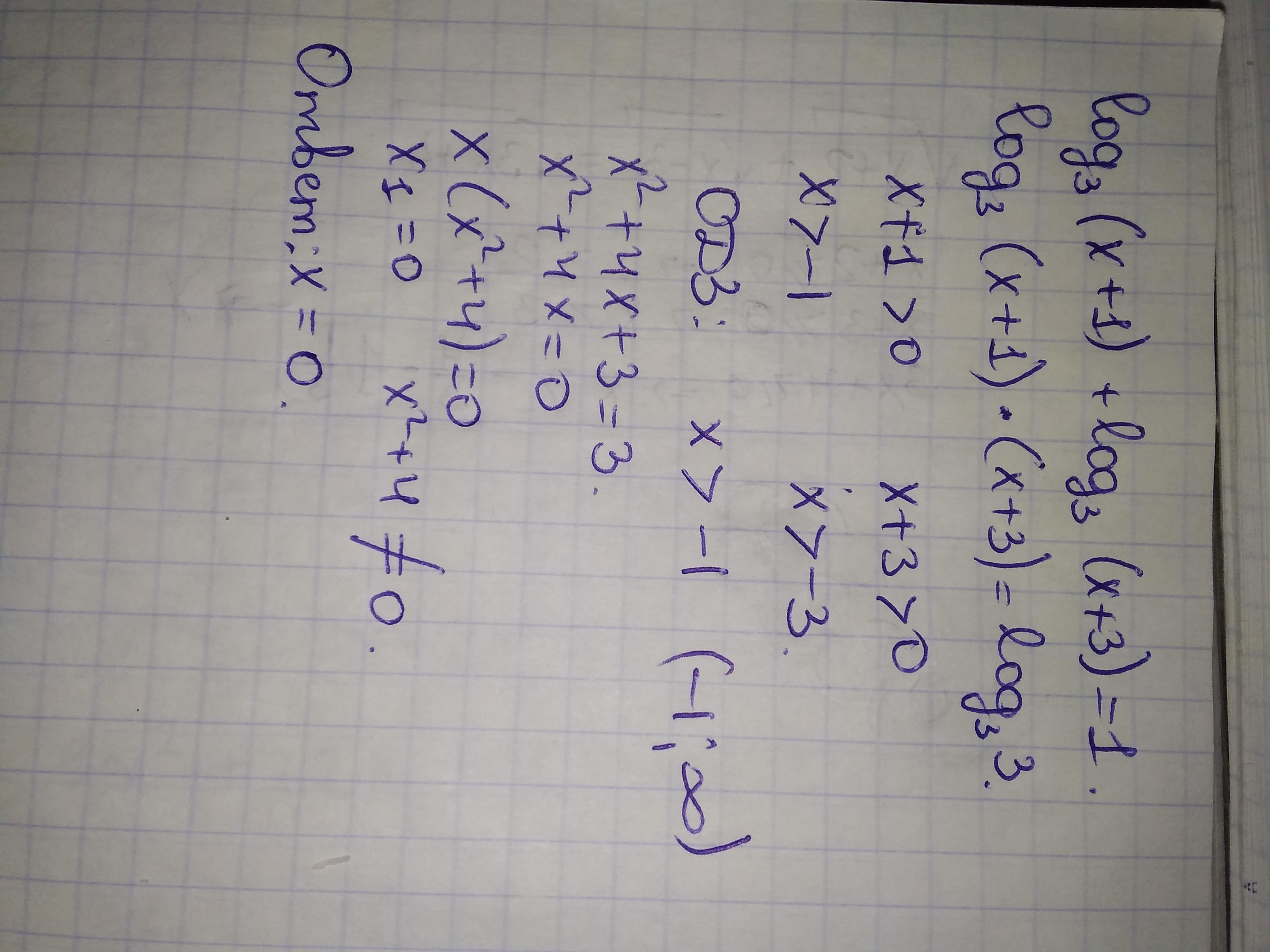 а) log3 (x + 1) + log3 (x + 3) = 1