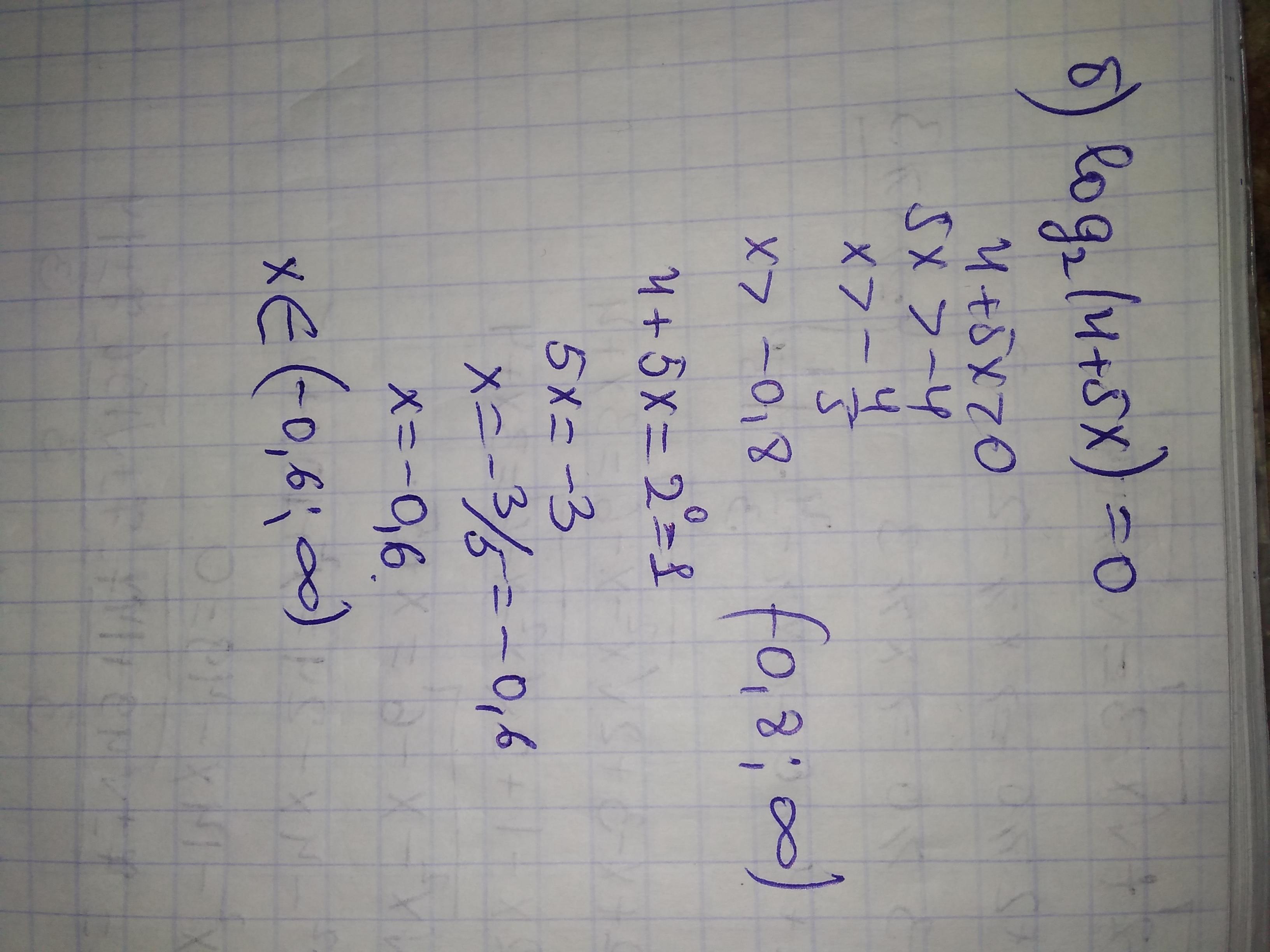 б) log2 (4 + 5x) = 0