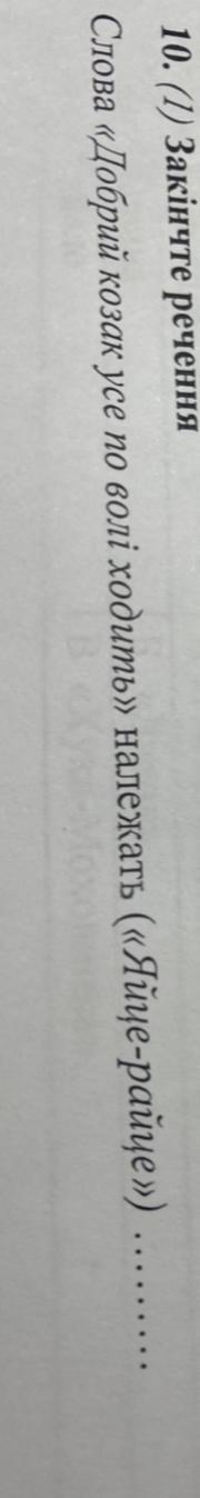 Слова «Добрий козак усе по волі ходить» належать («Яйце-райце») чоловікові.
