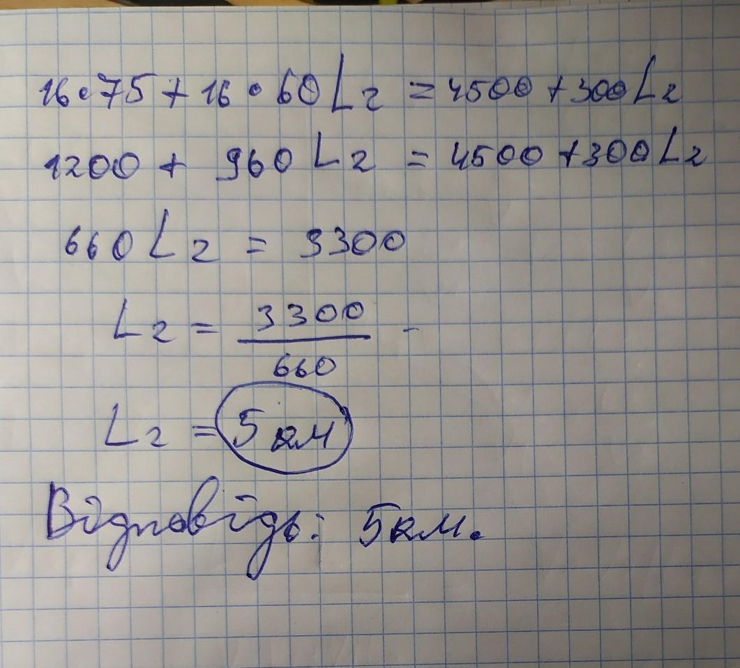 7.28. З міста до селища рушив автобус, але, проїхавши 15 км, зламався. Решту шляху пасажирам довело- ся йти пішки. Яку відстань пройшли пасажири, якщо швидкість руху автобуса становила 60 км/год, швидкість ходьби — 5 км/год, а середня швидкість руху на всьому шляху дорівнювала 16 км/год?распишыте плиз
