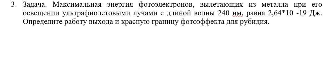 λкр = h·c / Авых = 6,63·10⁻³⁴·3·10⁸ / (5,65·10⁻¹⁹) ≈ 350 нм