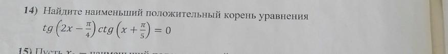 x=п/2-п/5+kп=3п/10+kп наименьший положительный корень при k=0 х=3п/10