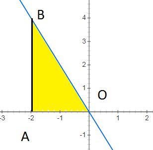 S=∫⁰₋₂(-2х)dx=(-2*x²/2)⁰₋₂=2*4/2=4 кв.ед