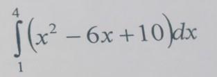 ∫₁⁴(x²-6x+10)dx=∫₁⁴x²dx -6∫₁⁴xdx+10∫₁⁴dx=1/3x³|₁⁴-6*1/2x²|₁⁴+10x|₁⁴=