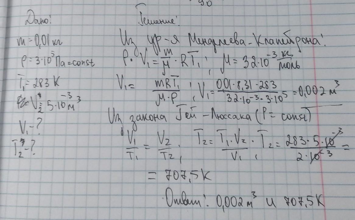 10 г кислорода находятся под давлением 3 * 10 ^ 5 Па при температуре 10 градусов после нагревания при постоянном давлении кислород занял объем 5 л