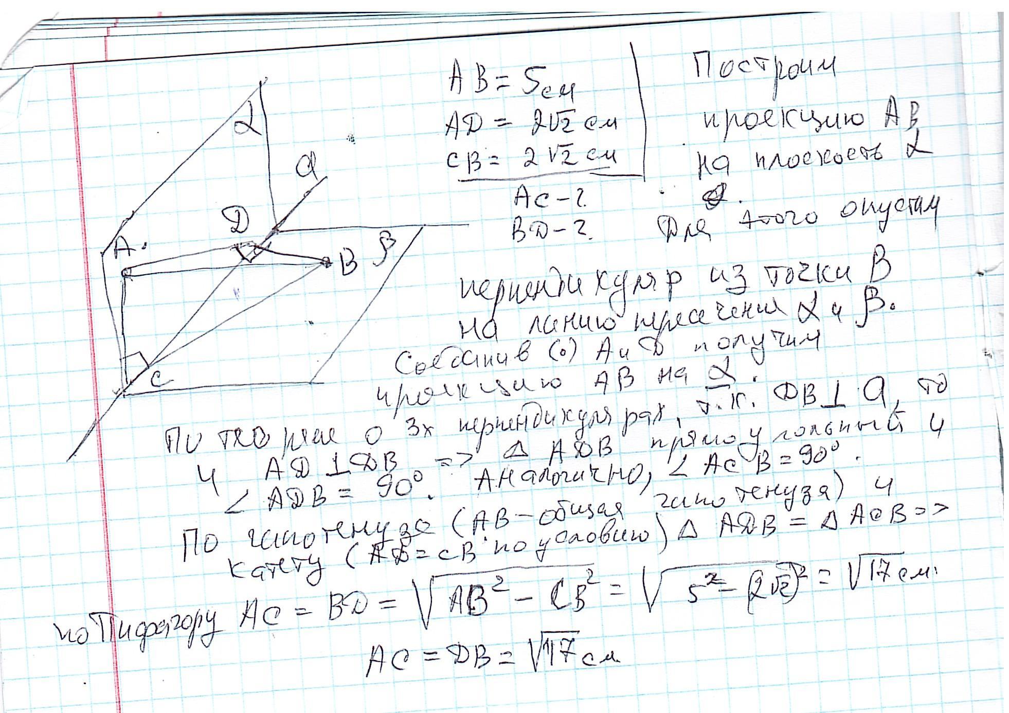 Аналогично, ВД - расстояние от точки В на плоскости бета, до плоскости альфа.