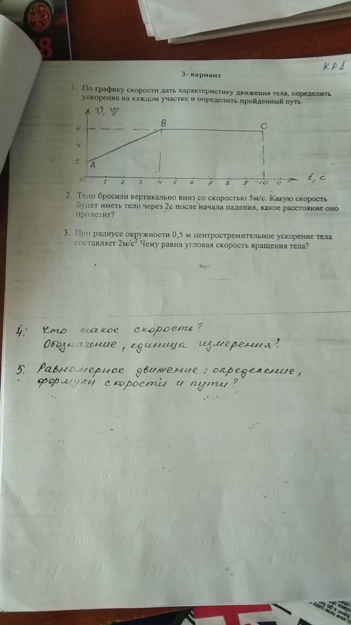 v₁ = v₀ + gt₁ = 5 + 10 · 2 = 25 (м/с)