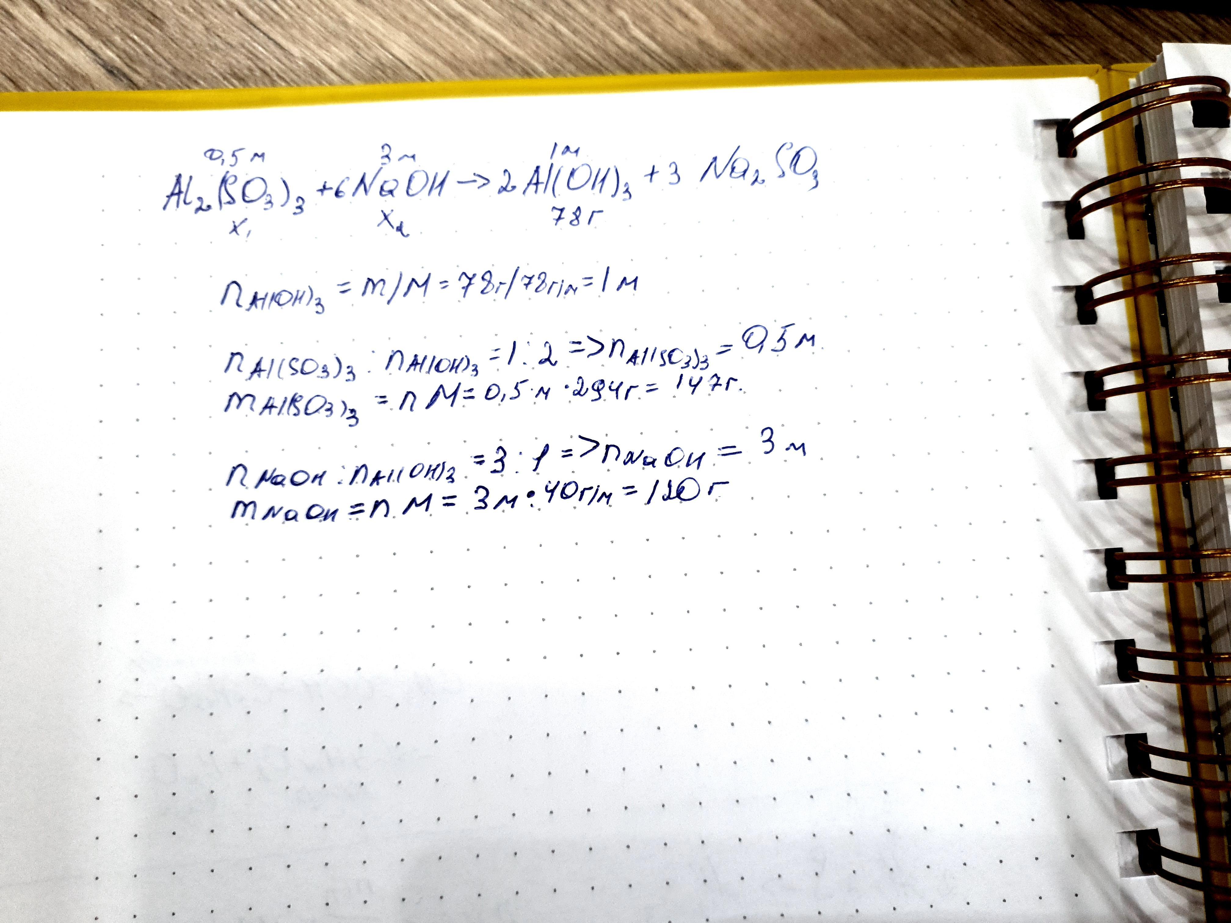 сколько г сульфита алюминия и гидроксида натрия вступает в реакцию, чтобы получить 78 г гидроксида алюминия
