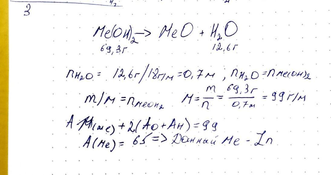 У результаті термічного розкладу гідроксиду металу (II) масою 69,3 г одержали 12,6г води. Визначте невідомий метал.
