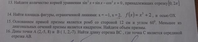 С ((x₁+x₂)/2; (y₁+y₂)/2; (z₁+z₂)/2)=((2+1)/2; (-5+2)/2; (8-7)/2)=C (1,5; -1,5; 0,5)