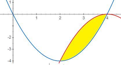 S₁=∫⁴₂(x²-4x)dx=((x³/3)-2x²)⁴₂=((64/3)-32)-((8/3-8)=(64/3)-32- (8/3)+8=