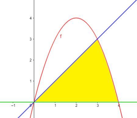 2. Площадь фигуры, ограниченной линиями y=4x-x^2, y=x, y=0, равна