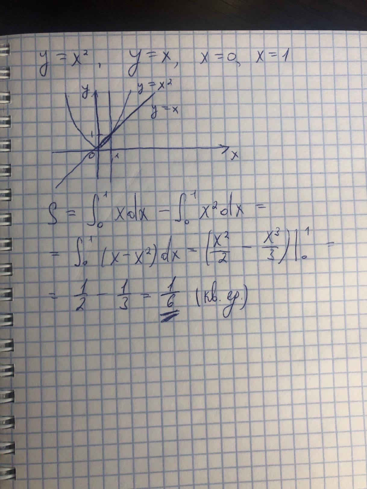 Найти площадь области D,ограниченной линиями: y=x^2;y=x;x=0;x=1