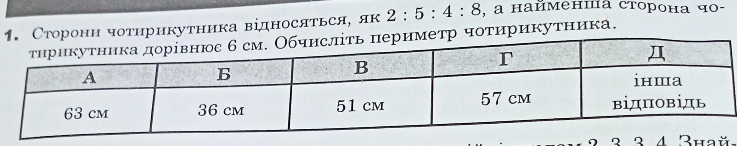 Периметр чотирикутника - це сума всіх довжин його сторін, тобто оскільки вони відносяться, як 2 : 5 : 4 : 8, тобто можна їх виразити через