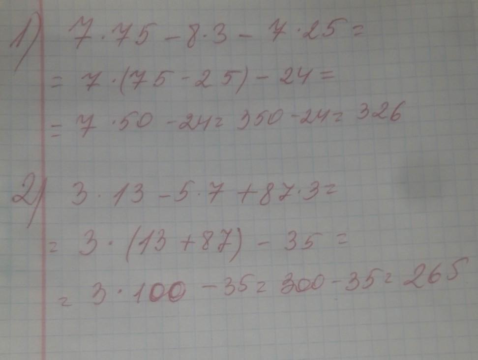 7 * 75 - 8 * 3 - 7 * 25 = 7 * (75 - 25) - 24 = 7 * 50 - 24 = 350 - 24 = 326