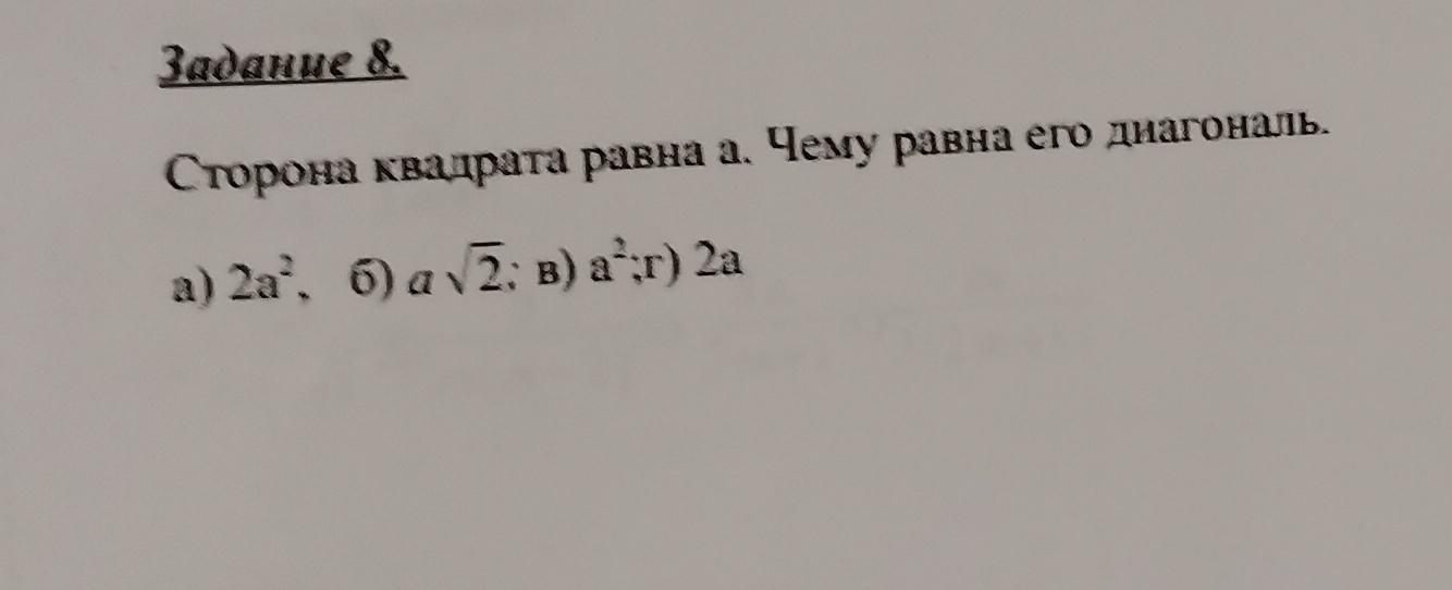 Диагональ квадрата равна стороне квадрата, умноженной на корень из двух.