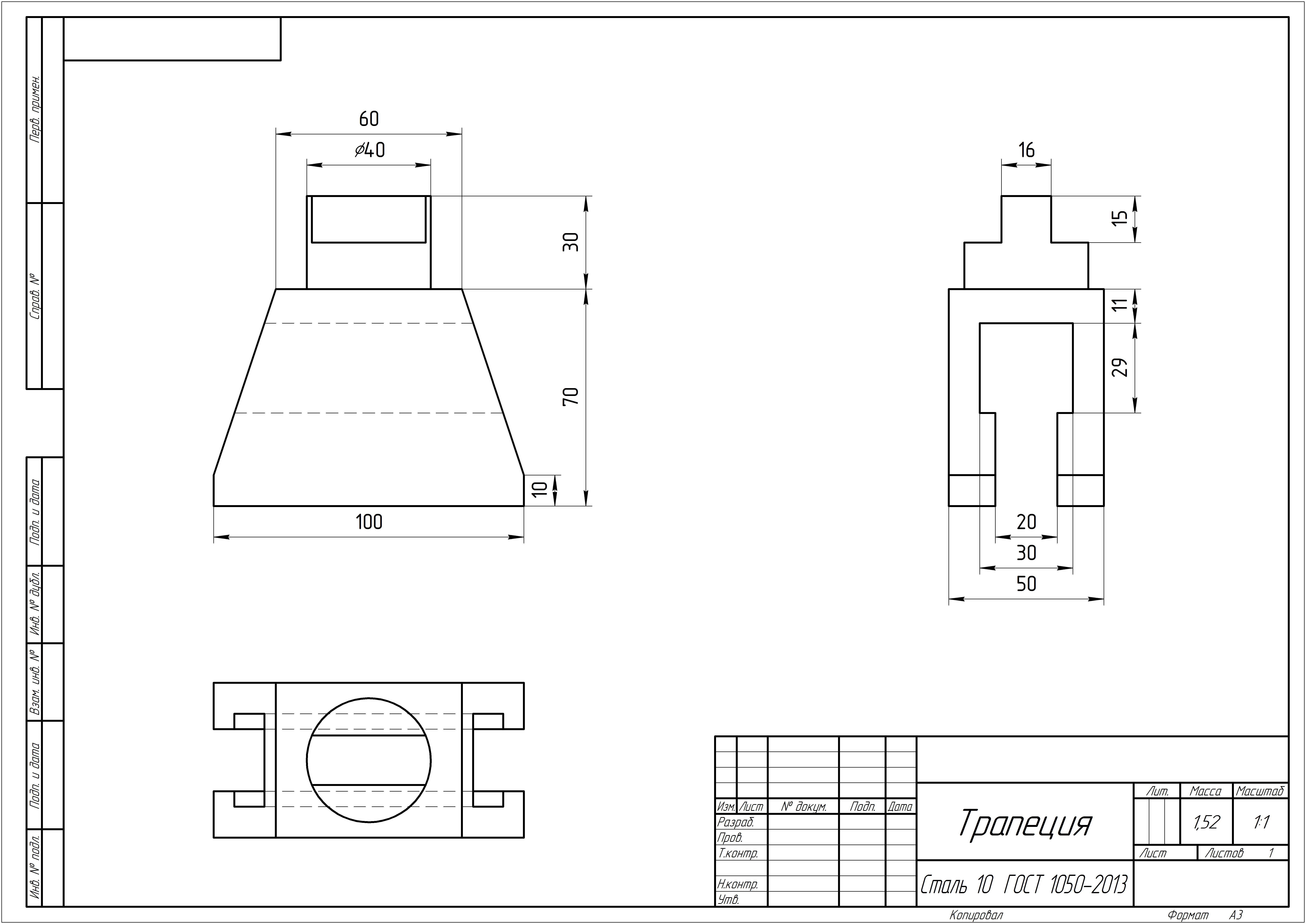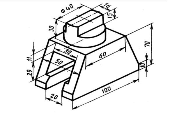 По аксонометрической проекции построить вид сверху, проставить размеры чертежным шрифтом (тип Б без наклона)