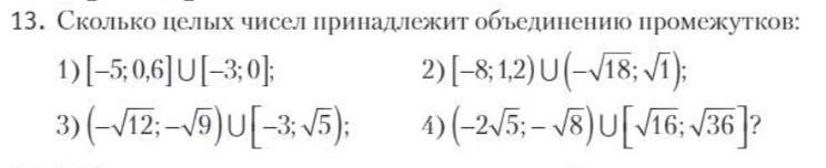 4) (-2√5; -√8)∪[√16; √36] ⇒ (-2√5; -√8)∪[4; 6].
