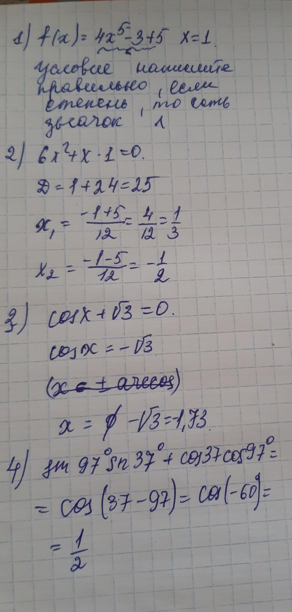 (1 балл) Вычислите, не пользуясь тригонометрическими таблицами: