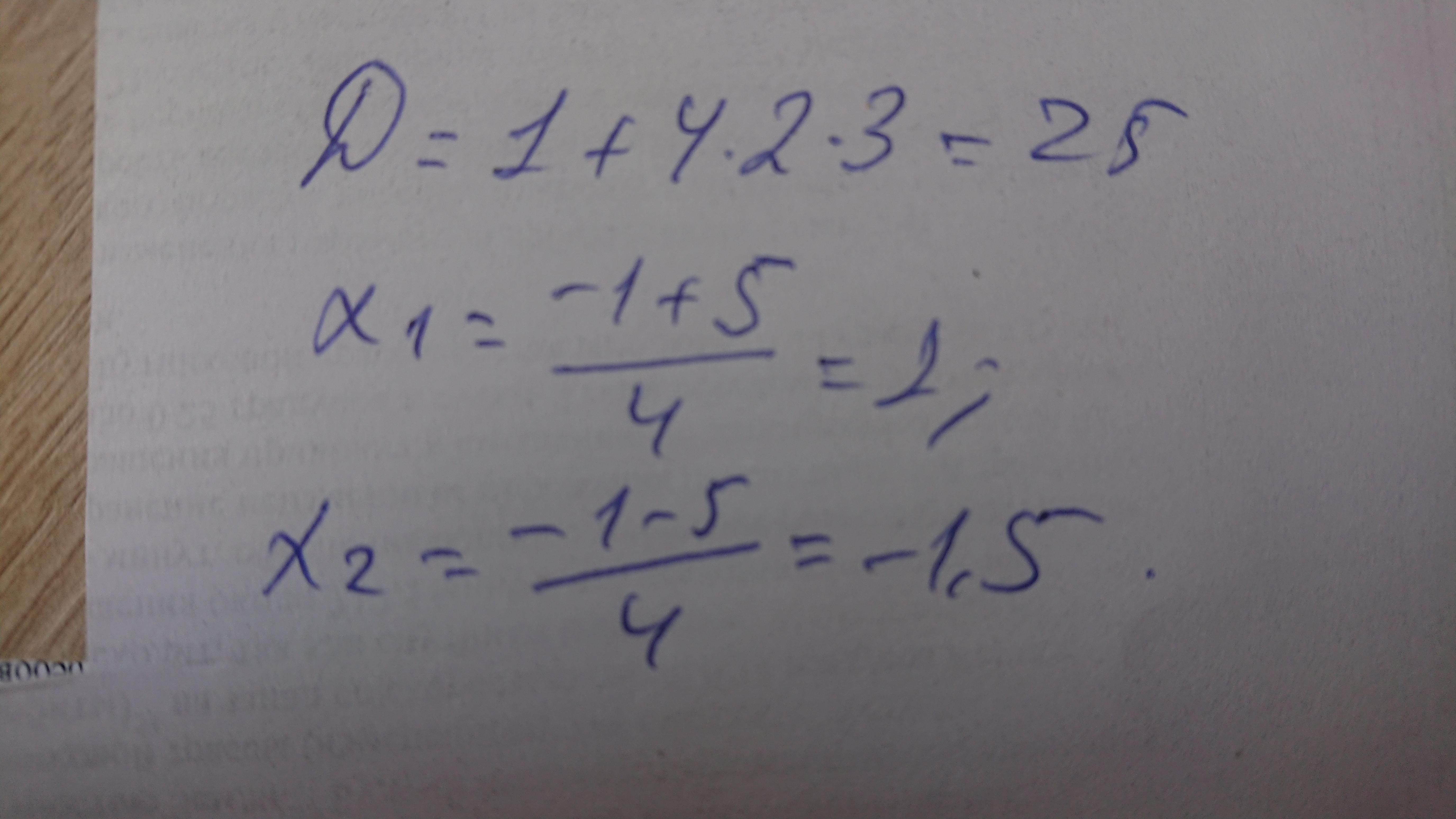 x₂ = (-1 + √25)/2·2 = (-1 + 5)/4 = 4/4 = 1