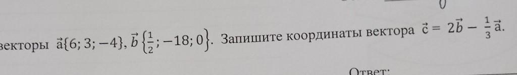 c=2(\frac{1}{2};-18;0)-\frac{1}{3} (6;3;-4)=(1;-36;0)-(2;1;-\frac{4}{3} )=1-2;(-36)-1; 0 -(-\frac{4}{3}  ) = (-1; -37;\frac{4}{3})