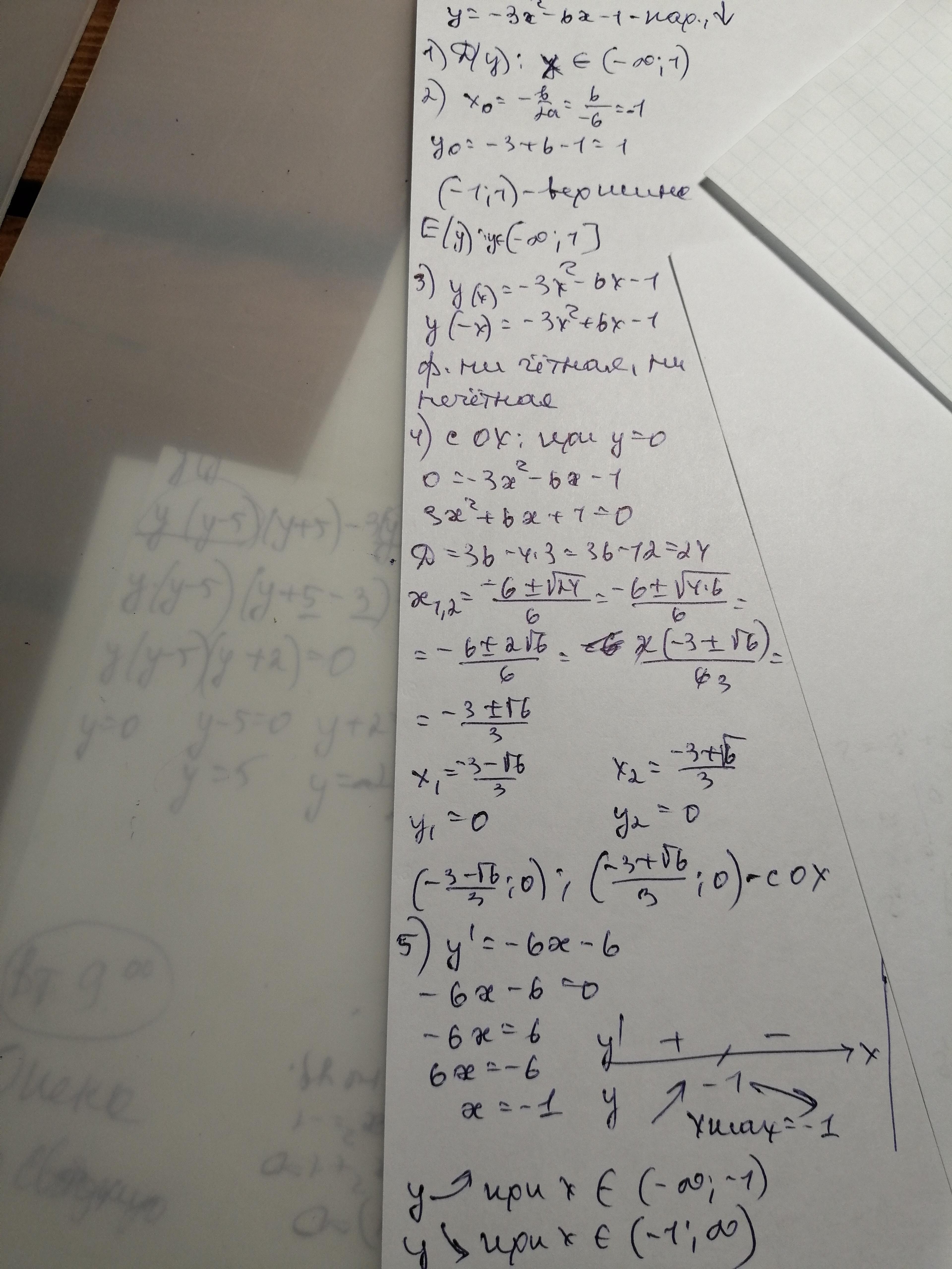 y(-х)= -3(-x)²-6*(-x)-1= -3x²+6x-1 ≠ у(х)≠ -у(х) общий вид