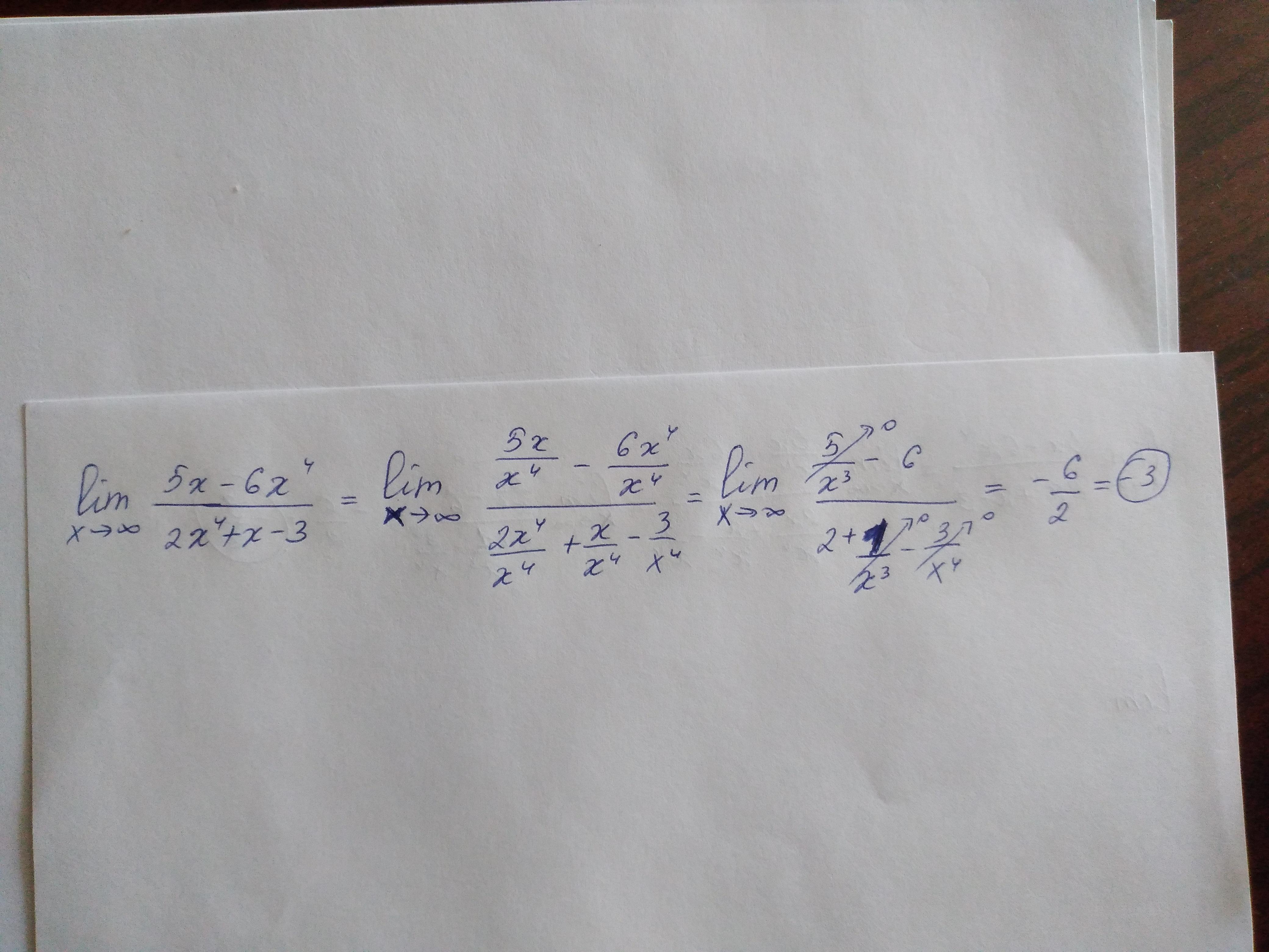 lim(5x-6x⁴)/(2x⁴+x-3)
