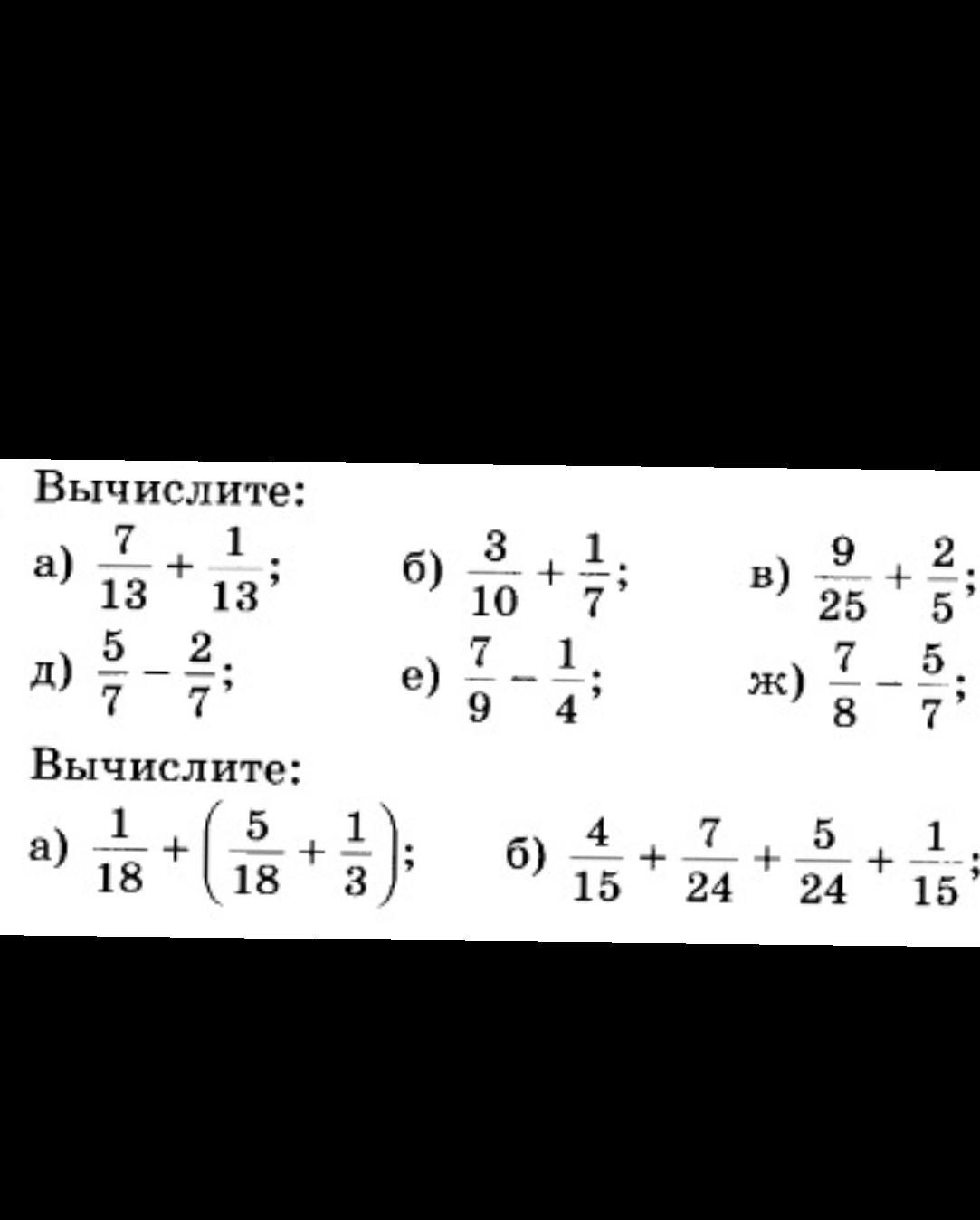 д) 5/7 - 2/7 = 3/7
