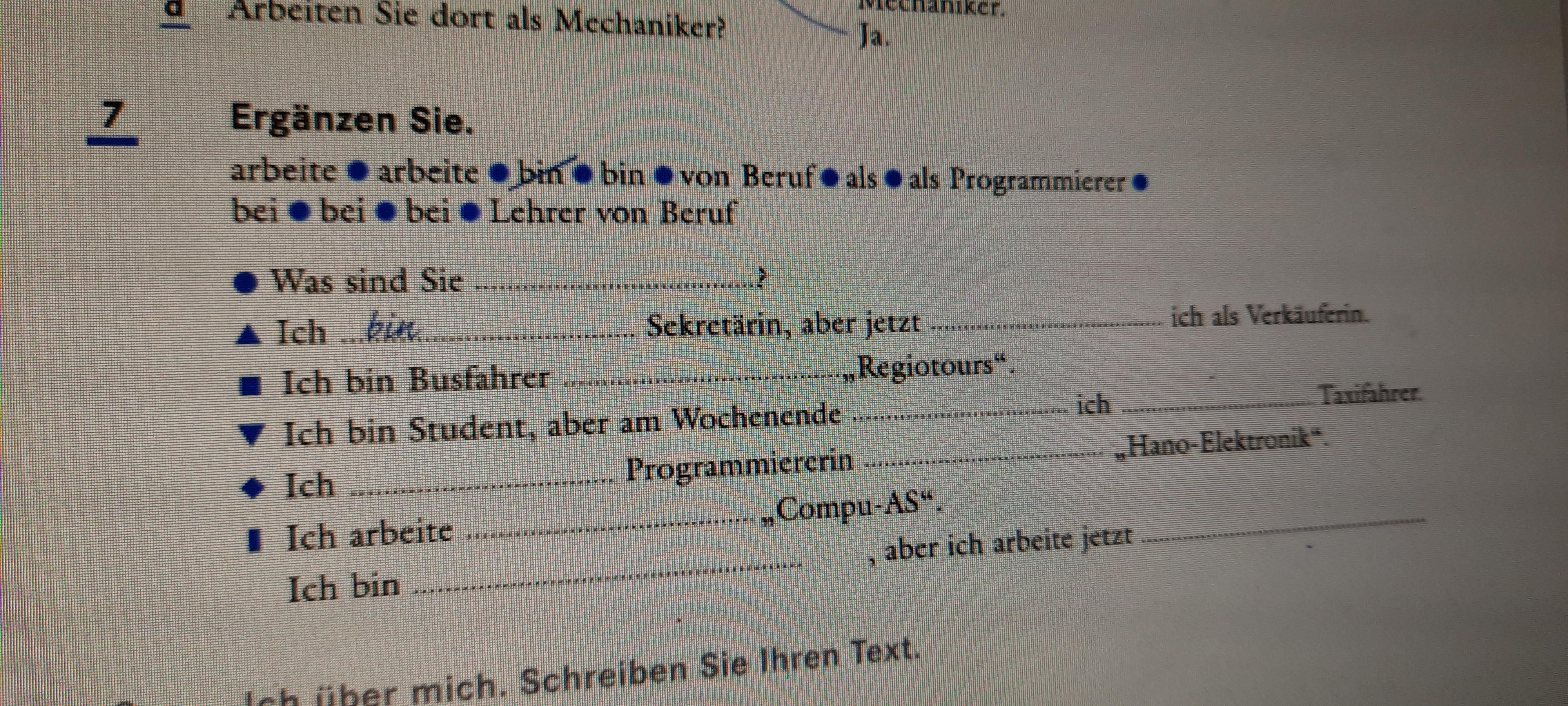 7. Ich bin Lehrer von Beruf, aber ich arbeite jetzt als Programmierer.